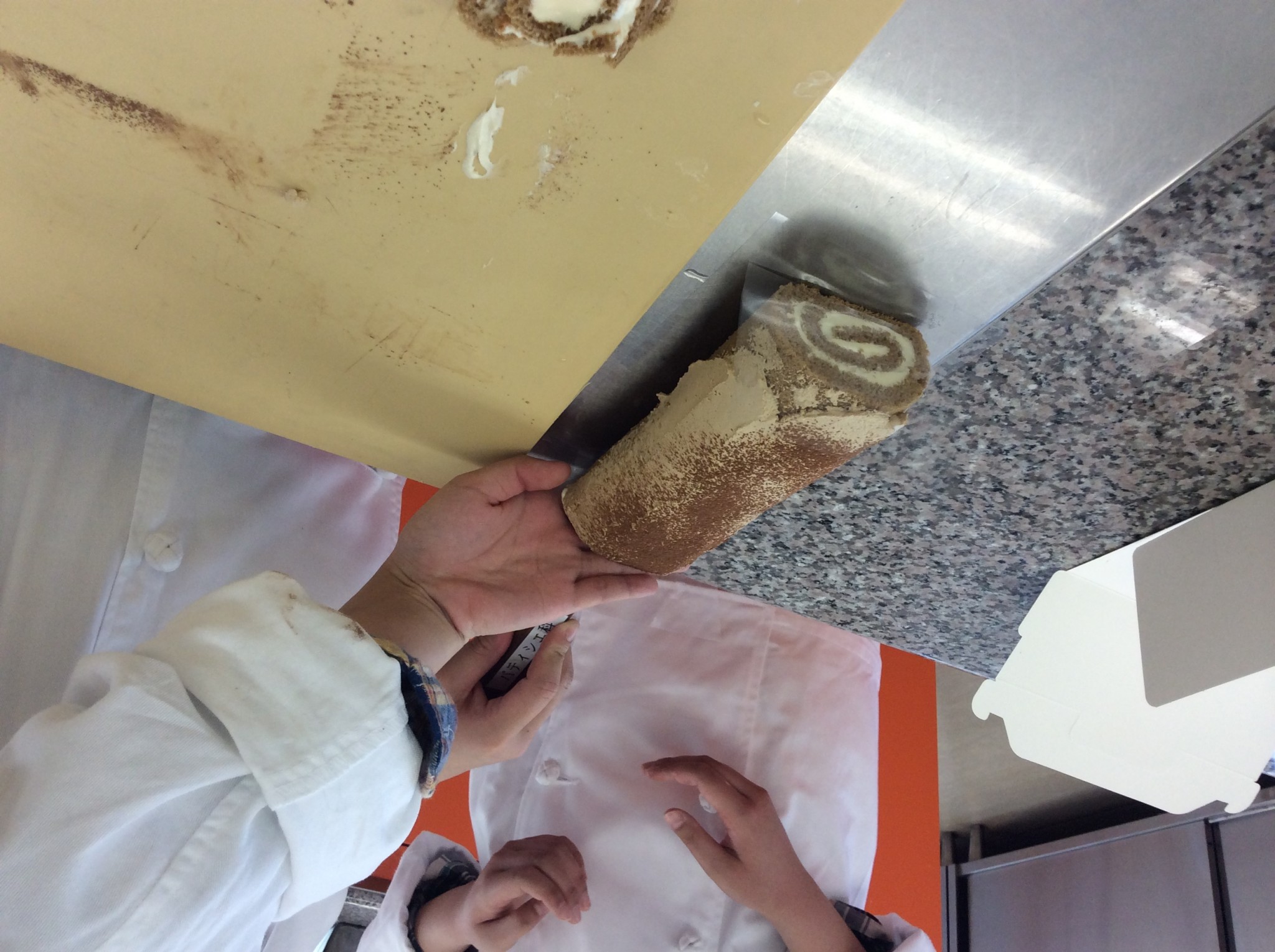 今日は生地から自分たちで作り、ロールを巻き仕上げまでを行いました!