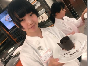 みなさんには、キャラメルムースとクリームを仕込んでいただいて、組み立てていきました。