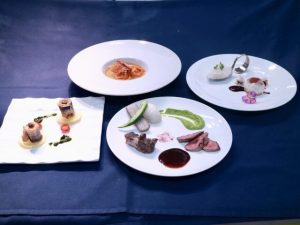 羽幌町甘エビと北海道産牛肉を使用したコース料理を